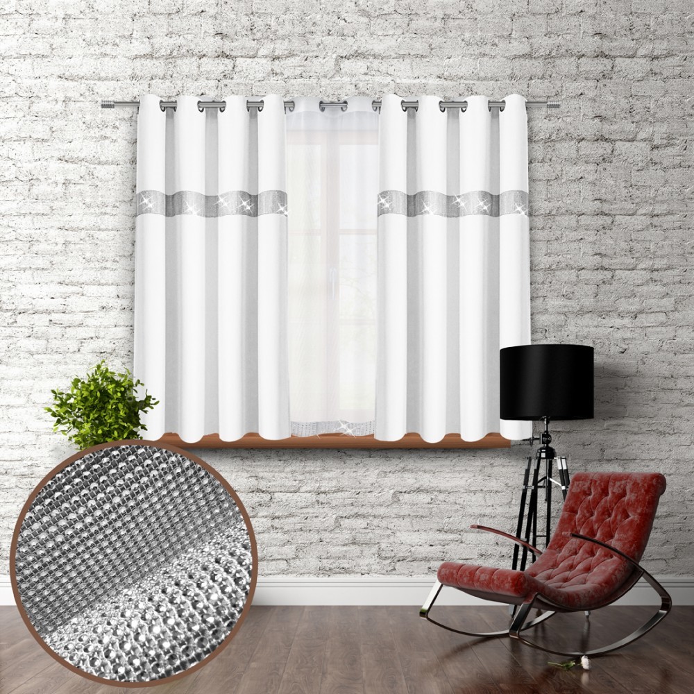 Dekorační krátký závěs se zirkony s kruhy GLORY 160 bílá 140x160 cm (cena za 1 kus) MyBestHome