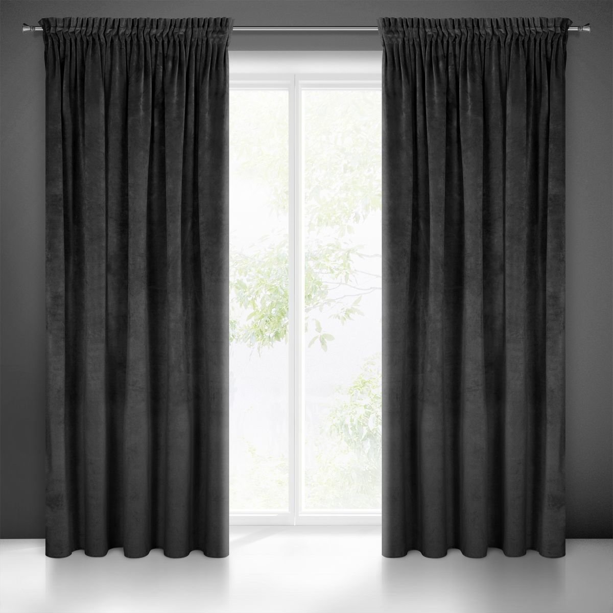 Dekorační velvet závěs s řasící páskou VILA černá 140x270 cm (cena za 1 kus) MyBestHome