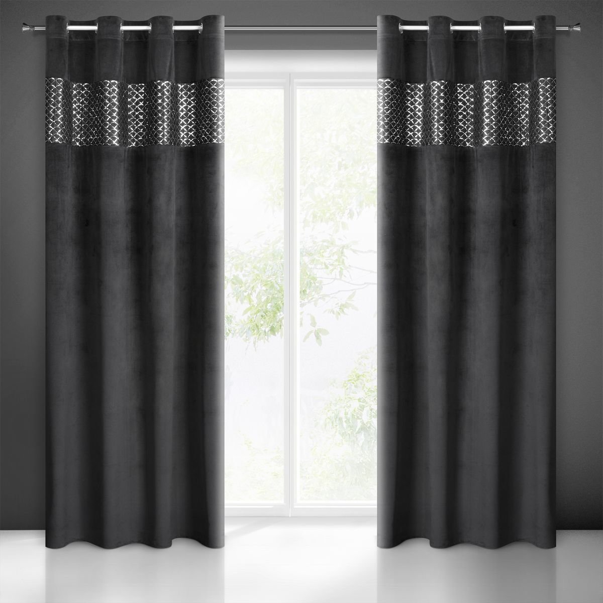 Dekorační vzorovaný velvet závěs MARGITA 140x250 cm černá (cena za 1 kus) MyBestHome