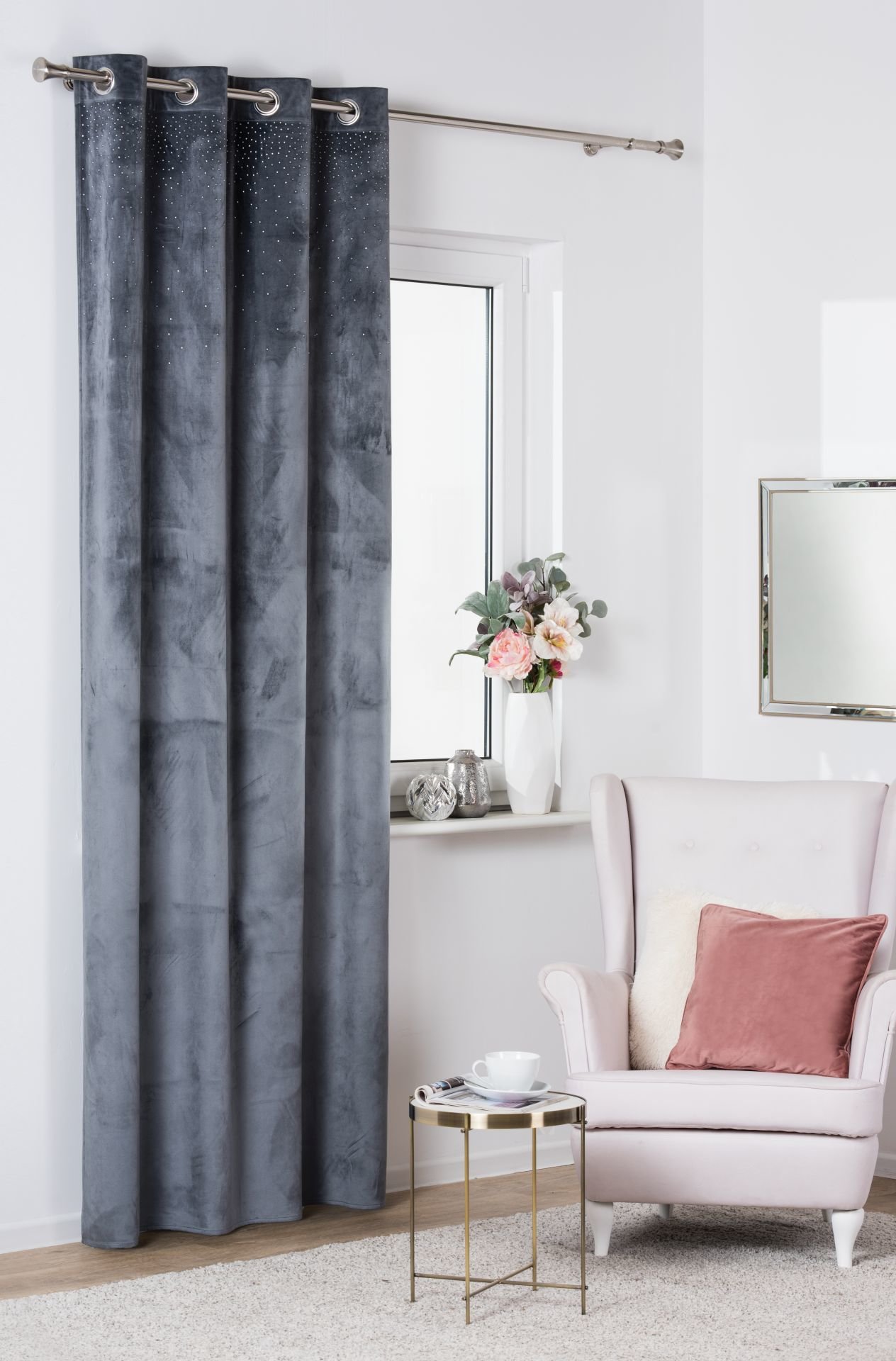 Dekorační velvet závěs na kroužky CRISTAL 135x260 cm, šedá (cena za 1 kus) MyBestHome