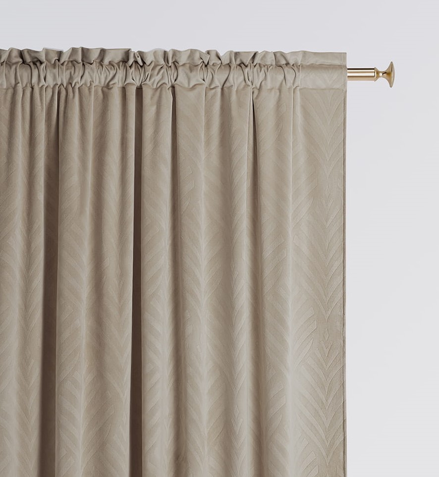 Dekorační závěs "VELVET" vyrobený ve vysoké kvalitě v moderních barvách a vzorech do ložnice nebo obývacího pokoje v rozměru 140x250 cm s řasící páskou na zavěšení na žabky, háčky, tyčovou gárnyž. 1 kus v balení. Jemná, na dotek příjemná tkanina se vzorem, který fascinuje svět designu - listový vzor uzavřený ve smyslné a sametové struktuře tkaniny.