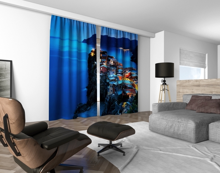 Dekorační 3D závěsy s velkoplošným tiskem s moderními motivy o rozměru 2x 160x250 cm jsou ideální do ložnice nebo obývacího pokoje. 3D závěsy jsou nemačkavé, pevné a díky moderním vzorům jedinečné. Jsou dodávány v setu 2 kusů závěsů - pravá a levá strana. 3D závěsy jsou ideální pro zavěšení na kolíčky - žabky, mají 5 cm širokou řasící pásku. Závěsy mají originální motiv přímořského města.
