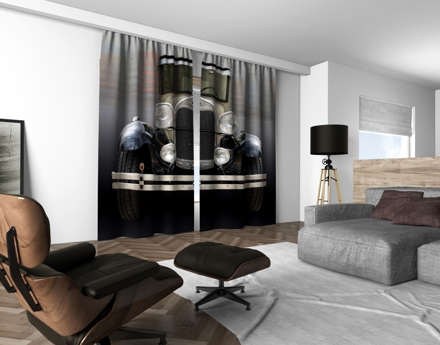 Dekorační 3D závěsy s velkoplošným tiskem s moderními motivy o rozměru 2x 160x250 cm jsou ideální do ložnice nebo obývacího pokoje. 3D závěsy jsou nemačkavé, pevné a díky moderním vzorům jedinečné. Jsou dodávány v setu 2 kusů závěsů - pravá a levá strana. 3D závěsy jsou ideální pro zavěšení na kolíčky - žabky, mají 5 cm širokou řasící pásku. Závěsy mají originální motiv starého veteránu.