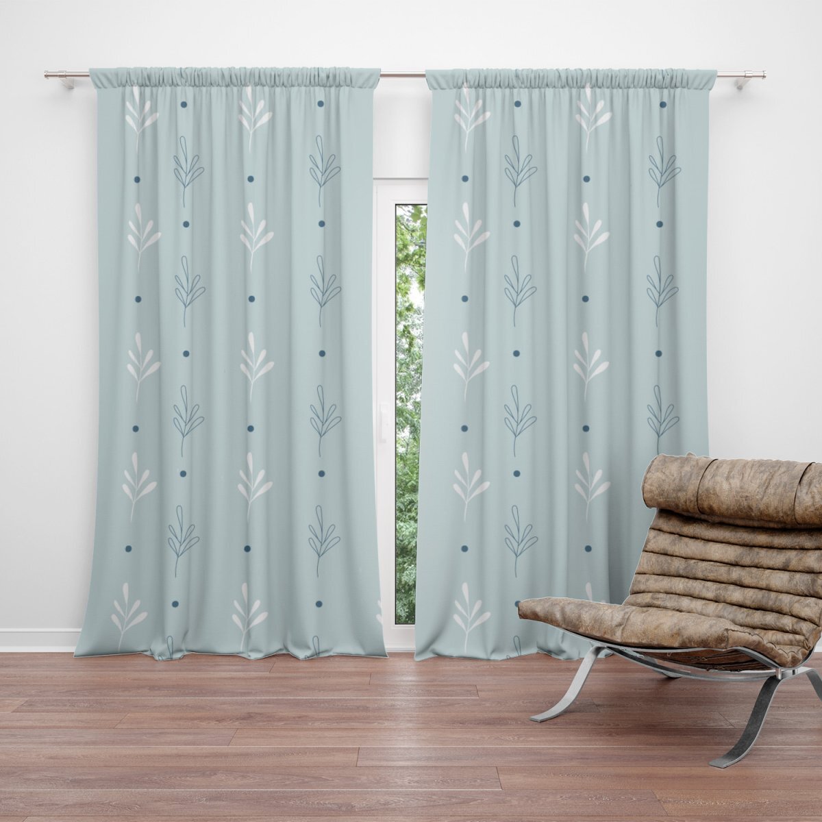 Závěs Modré a bílé lístky: 2ks 140x250cm
