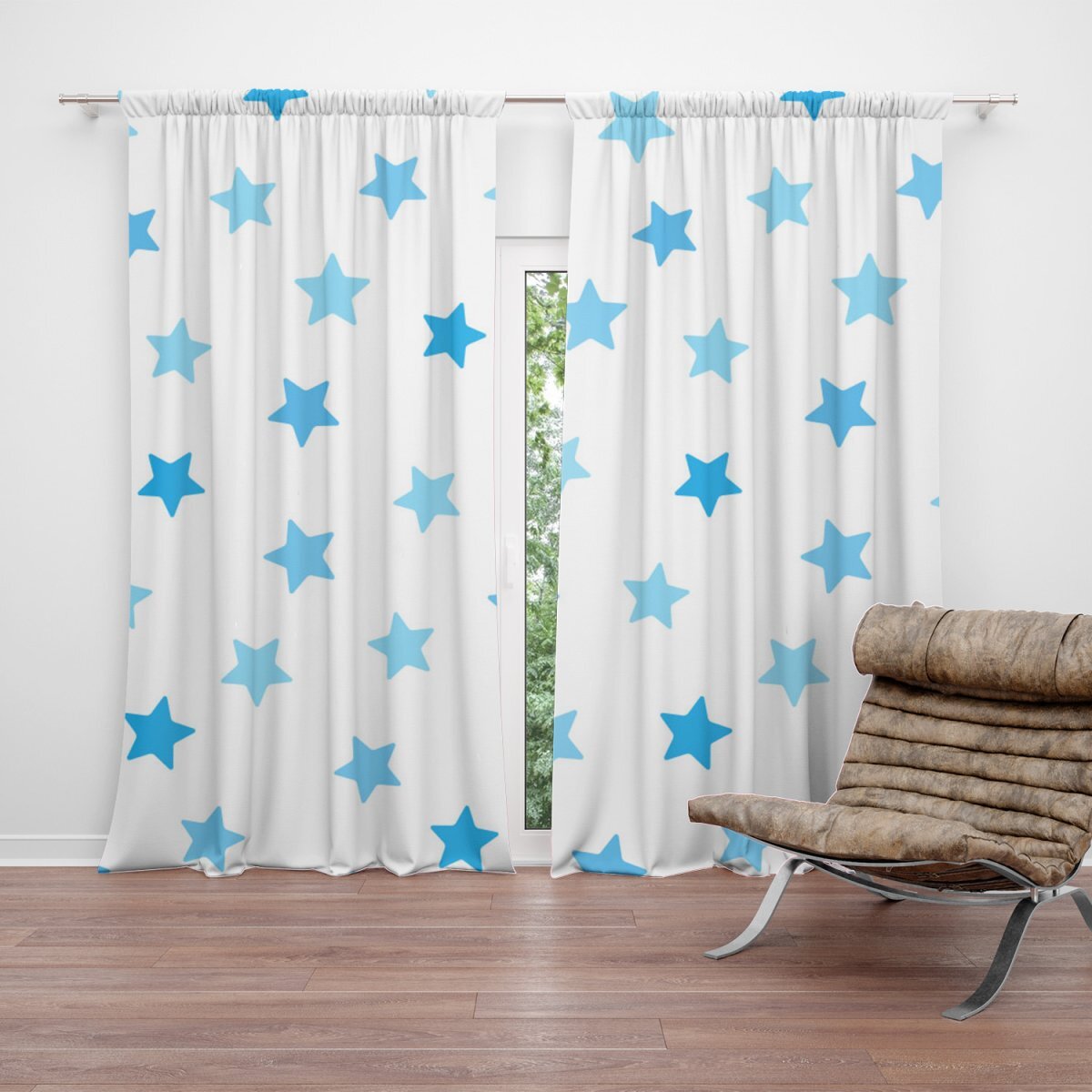 Závěs Modré hvězdy na bílé: 2ks 140x250cm