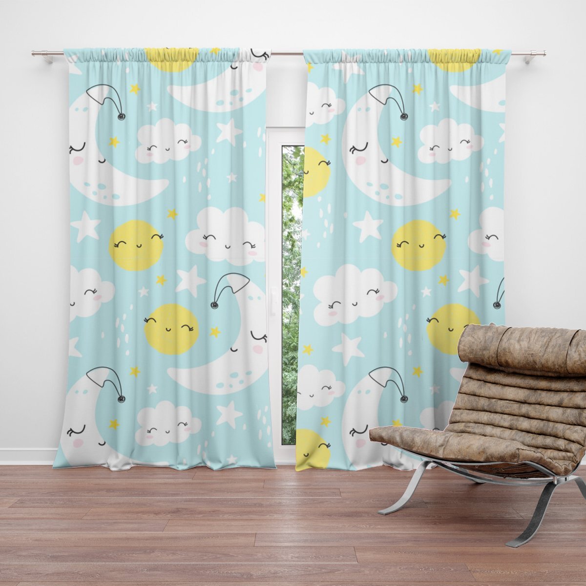 Závěs Měsíce, slunce a mráčky: 2ks 140x250cm