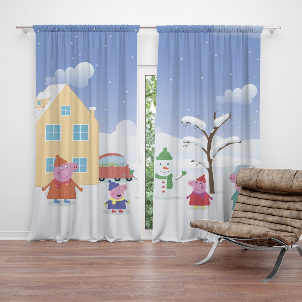 Závěs Prasátko Pepina Zima: 2ks 140x250cm