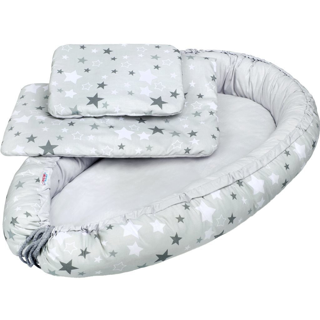 Luxusní hnízdečko s peřinkami pro miminko New Baby bílo-šedé hvězdičky