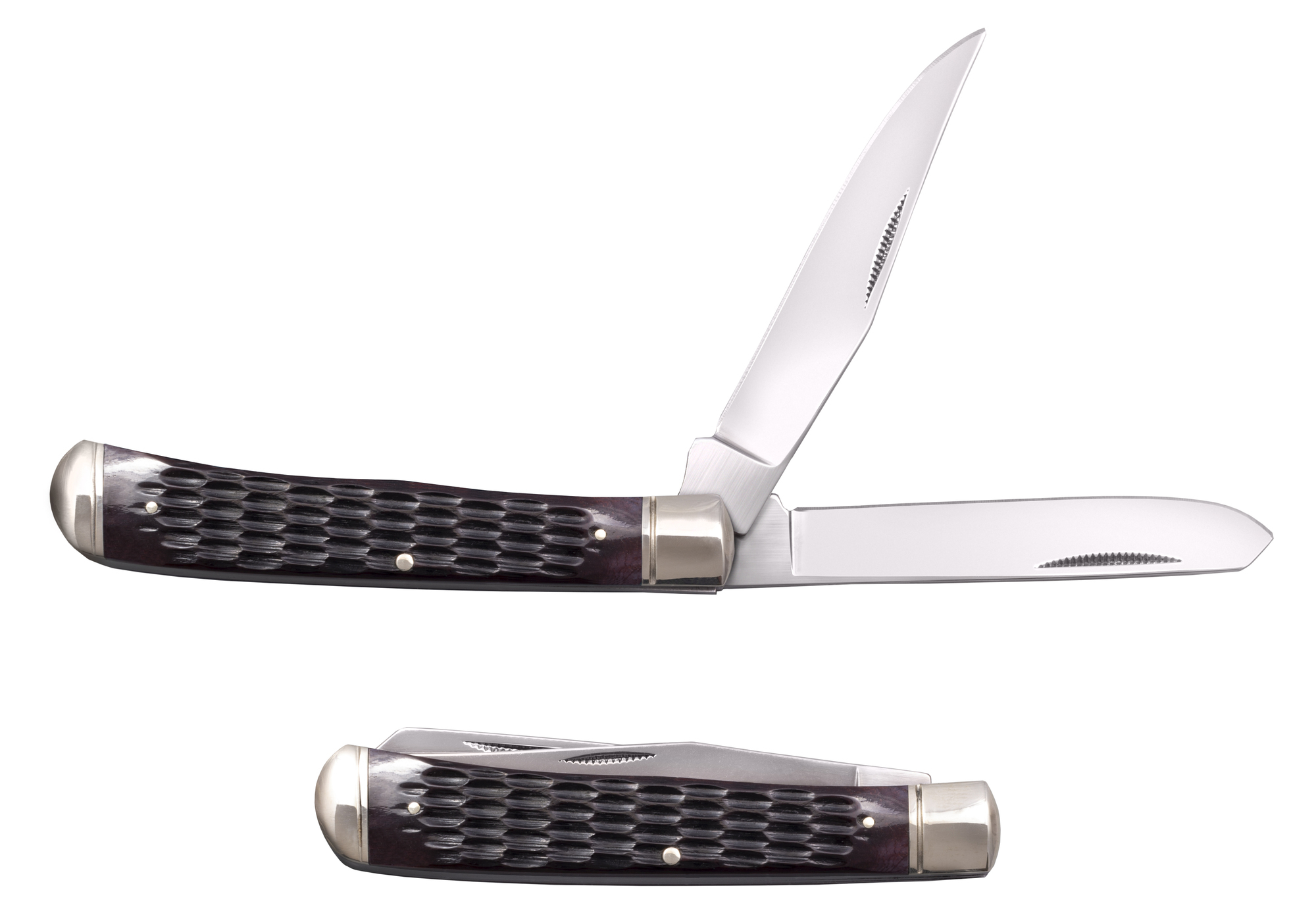 Stredne veľký zatvárací vreckový nôž Cold Steel Trapper Jigged Bone s dvoma čepeľami (na rezanie na sťahovanie kože), je variáciou klasického noža Trapper. Je vhodný na každodenné nosenie i vonkajšie použitie.
