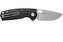 Rukoväť je z čierneho protišmykového materiálu FRN, s otvorom na šnúrku. Nôž má sponu na vrecká.