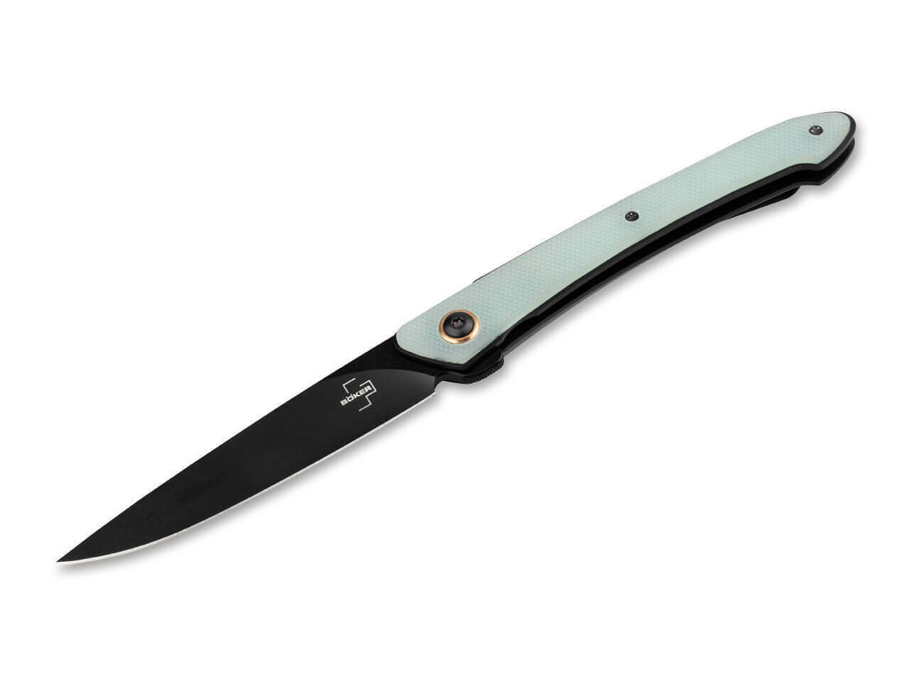 Tenký kompaktný zatvárací vreckový nôž Böker Plus Urban Spillo Jade vhodný na každodenné (EDC) nosenie.