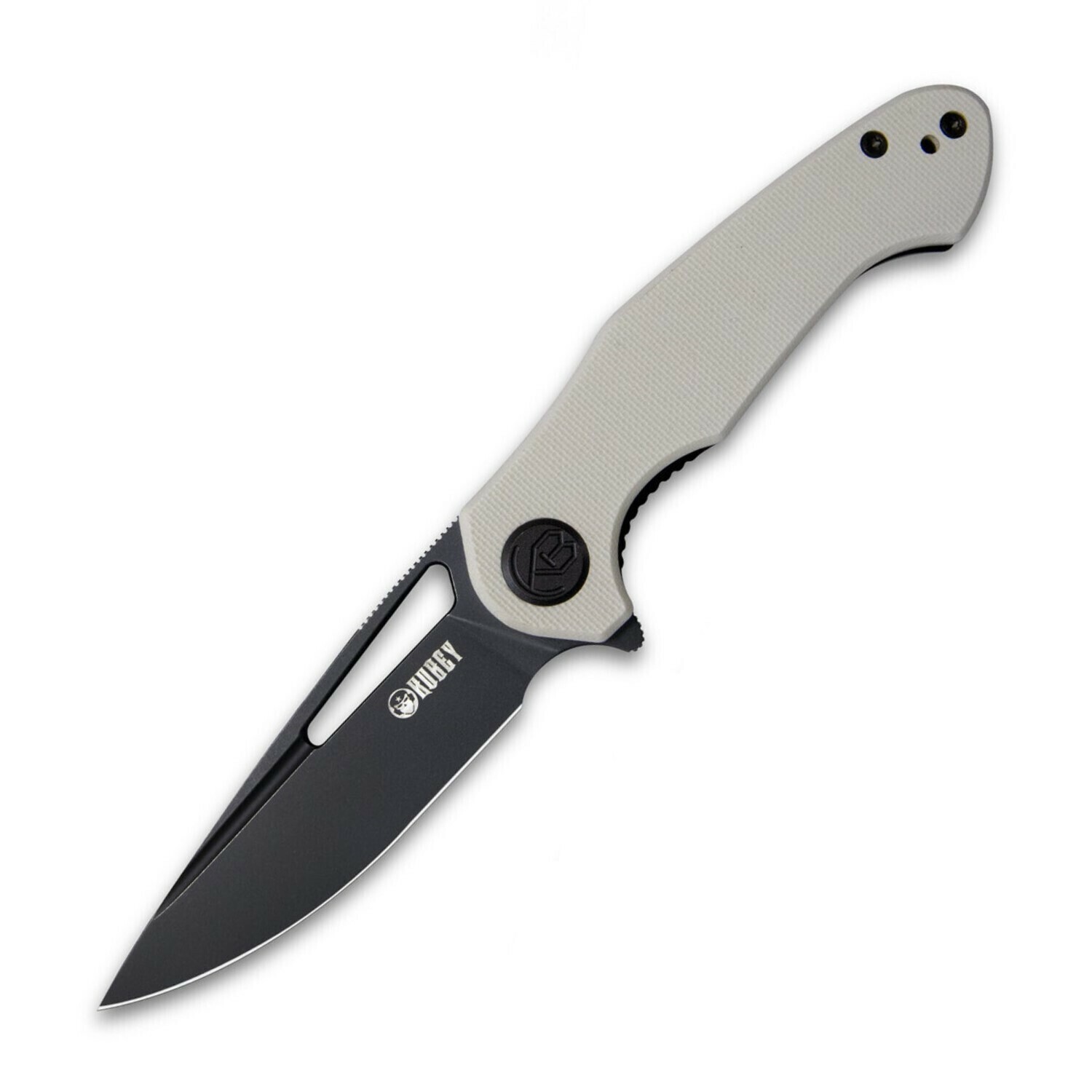 Kubey KU210G Dugu vreckový nôž 7,4 cm, Dark Stonewash, krémová Ivory, G10