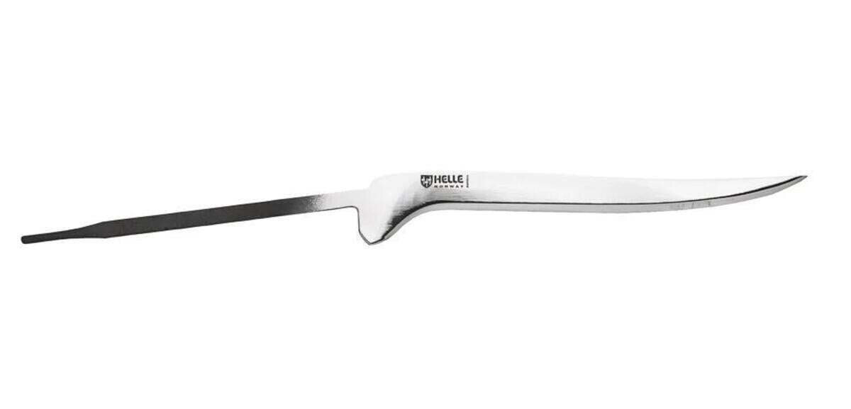 Tenká pružná čepeľ Helle s dĺžkou ostria 15,3 cm je vyrobená z nehrdzavejúcej ocele Sandvik 12C27. Rovnakú čepeľ nájdete na noži Steinbit.