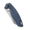 Rukoväť je vyrobená z materiálu Richlite (kompozitný materiál z tenkých vrstiev papiera, impregnovaný syntetickou živicou a zlisovaný pod vysokým tlakom) modrej farby. So sponou na vrecká.