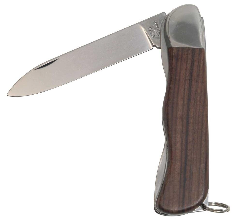 S čepeľou s hladkou hranou z nehrdzavejúcej ocele 420, otvára sa manuálne nechtom a zaisťuje ju Linerlock. Rukoväť je z exotického dreva Palisander a kovania, v spodnej časti má krúžok na kľúče.