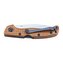 Rukoväť je z textúrovaného hnedého G10 s čiernymi skrutkami, s dierkou na šnúrku a čiernou sponou na vrecká.
