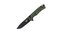 Rukoväť je z odolného materiálu G10 zeleno-čiernej farby, s textúrovaným povrchom a dizajnom inšpirovaným listami. S dierkou na šnúrku a sponou na vrecká.