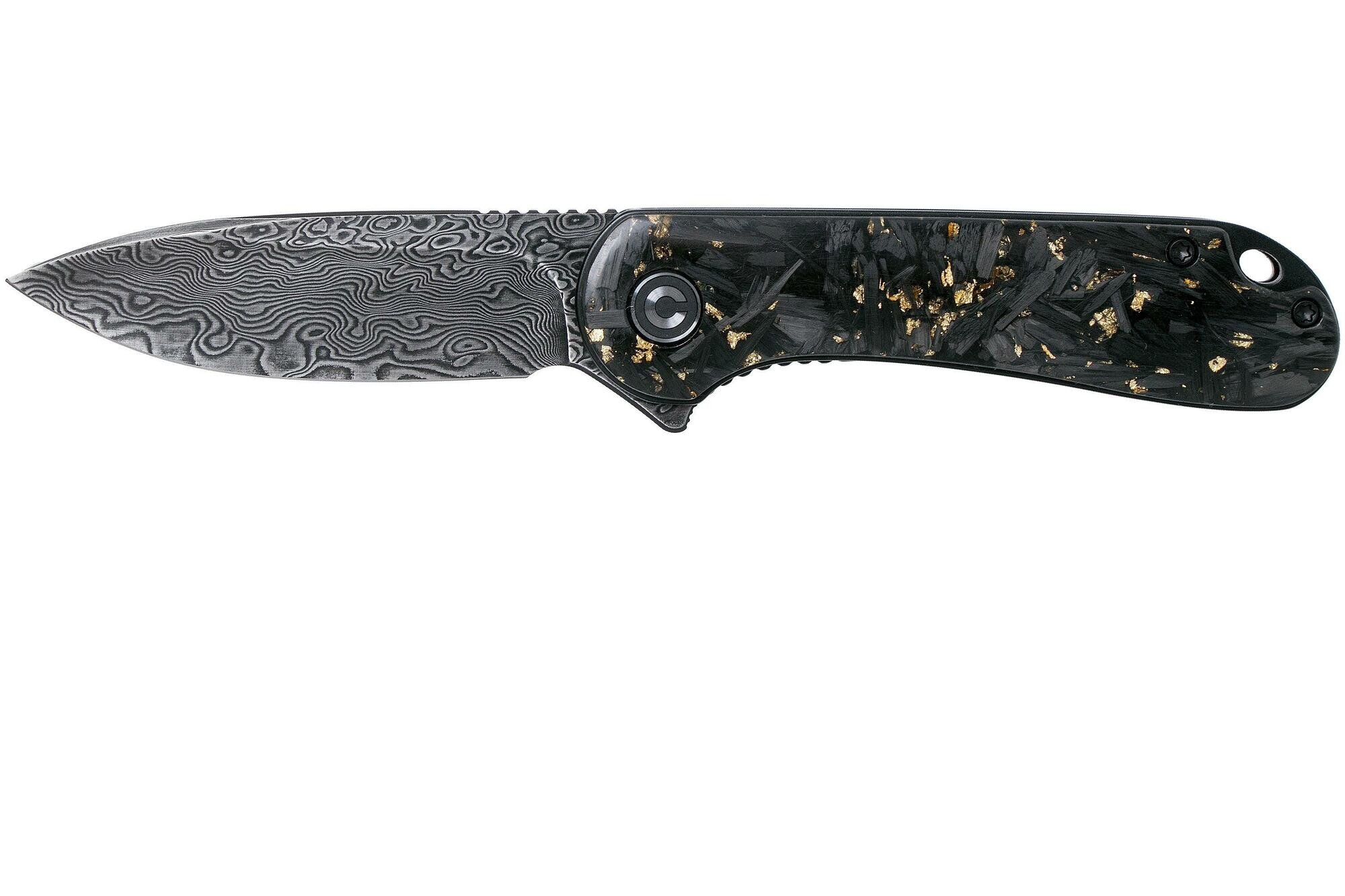 Kompaktný zatvárací vreckový CIVIVI Elementum Damascus/CF Golden je vhodný na každodenné (EDC) nosenie, ale je i elegantným pánskym nožom.