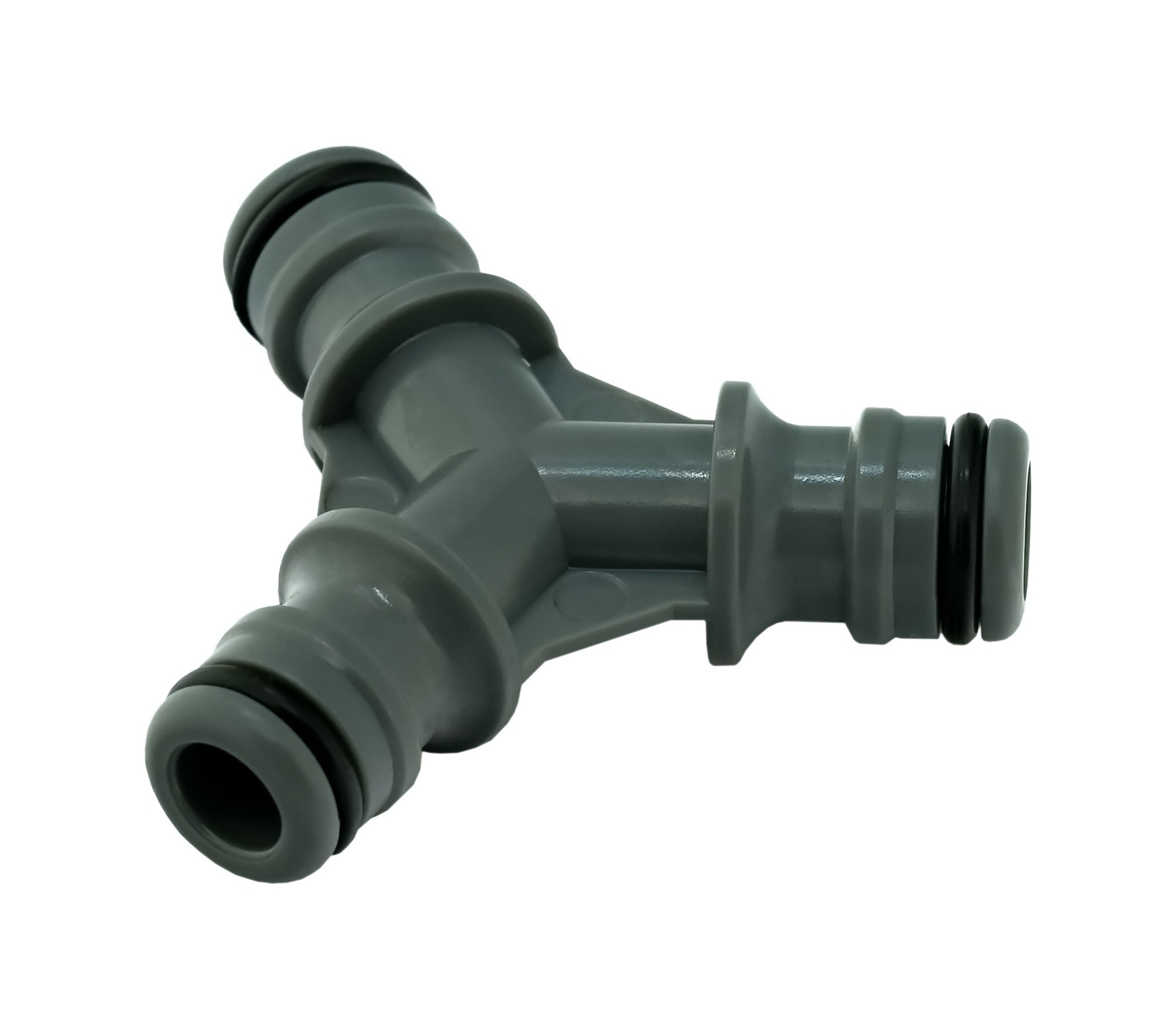Třícestná spojka zajišťuje rozdělení průtoku vody do více směrů a umožňuje tak snadné propojení více zavlažovacích příslušenství opatřených rychlospojkou CLICK.
