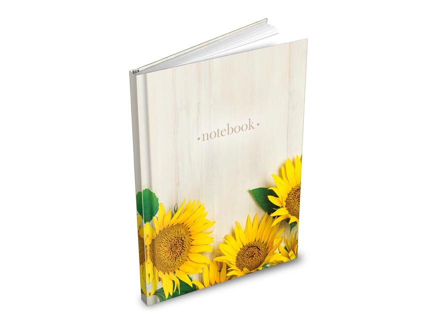 Motiv: slunečnice, nápis „notebook“
