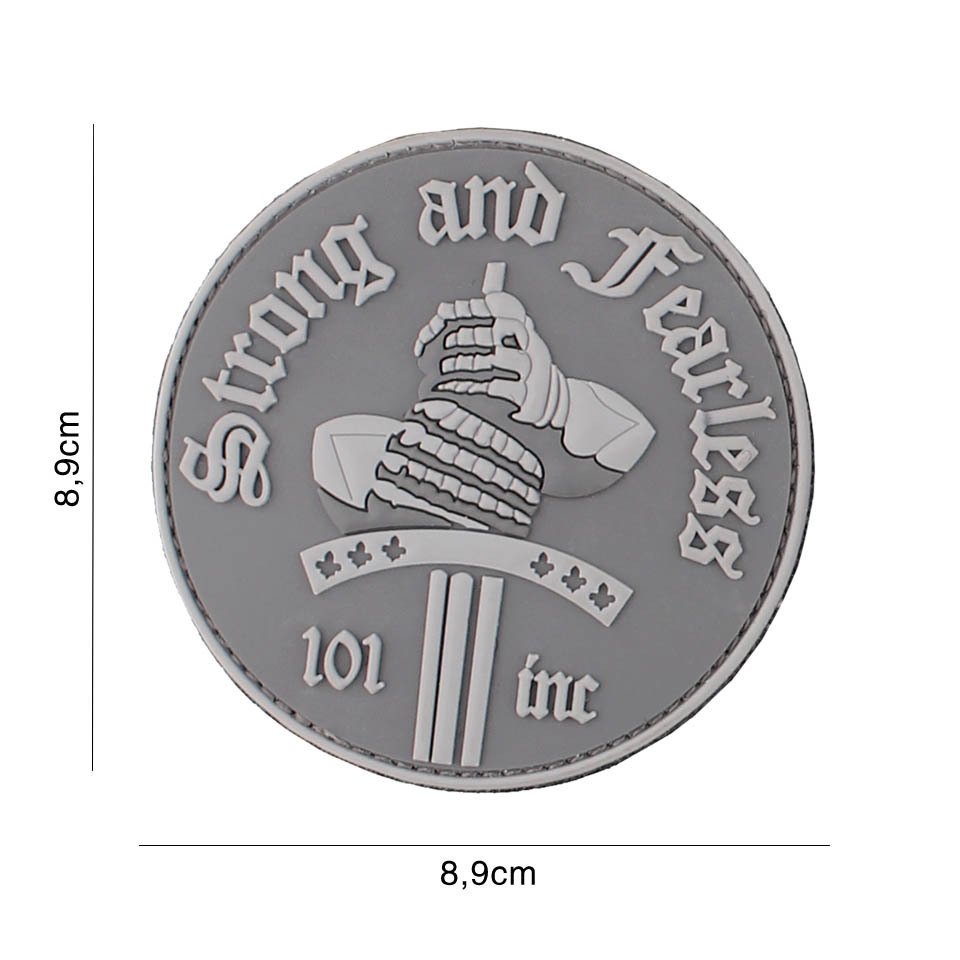 Gumová nášivka 101 Inc nápis Strong and Fearless - šedá