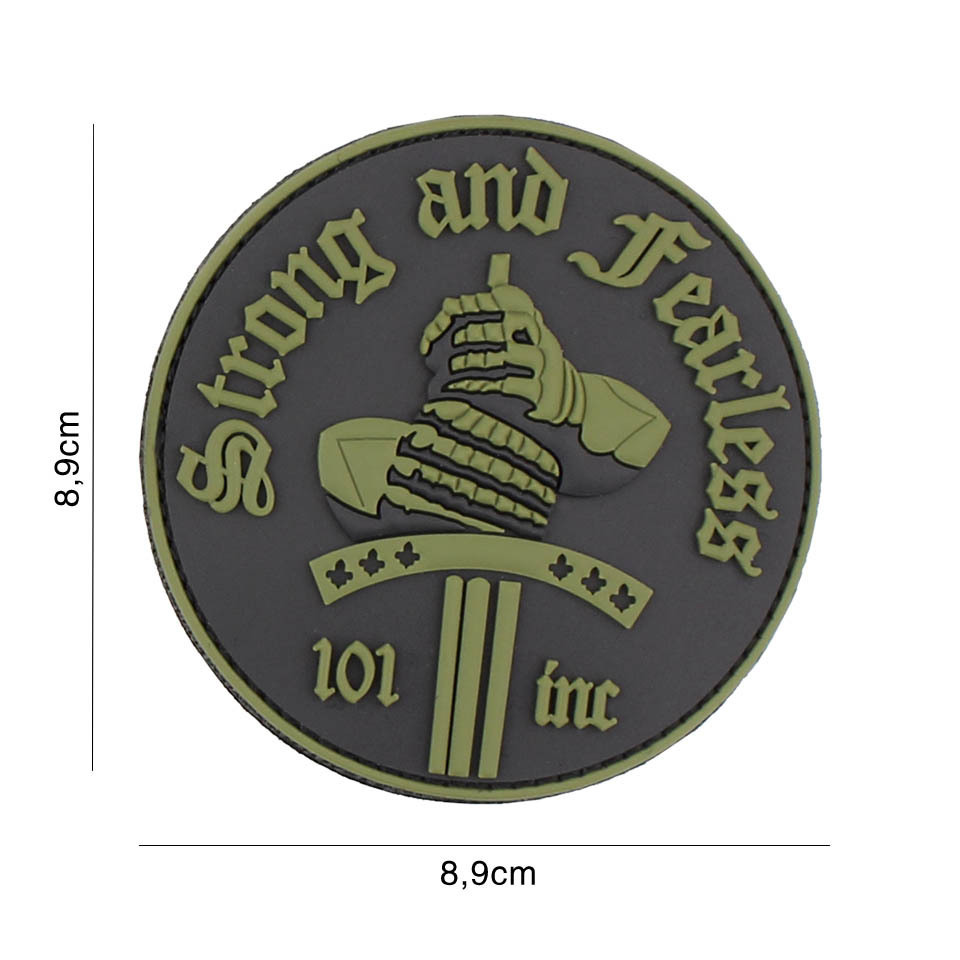 Gumová nášivka 101 Inc nápis Strong and Fearless - olivová