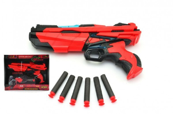 Pistole na pěnové náboje 6ks plast 28cm se světlem a zvukem na baterie v krabici