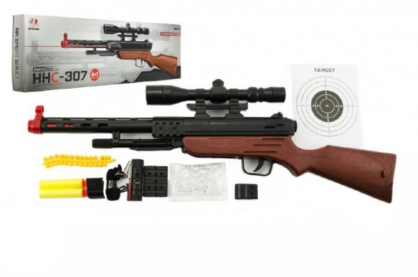 Pistole skládací plast 47cm na pěnové náboje i vodní kuličky 4v1 v krabici 58x18x5cm