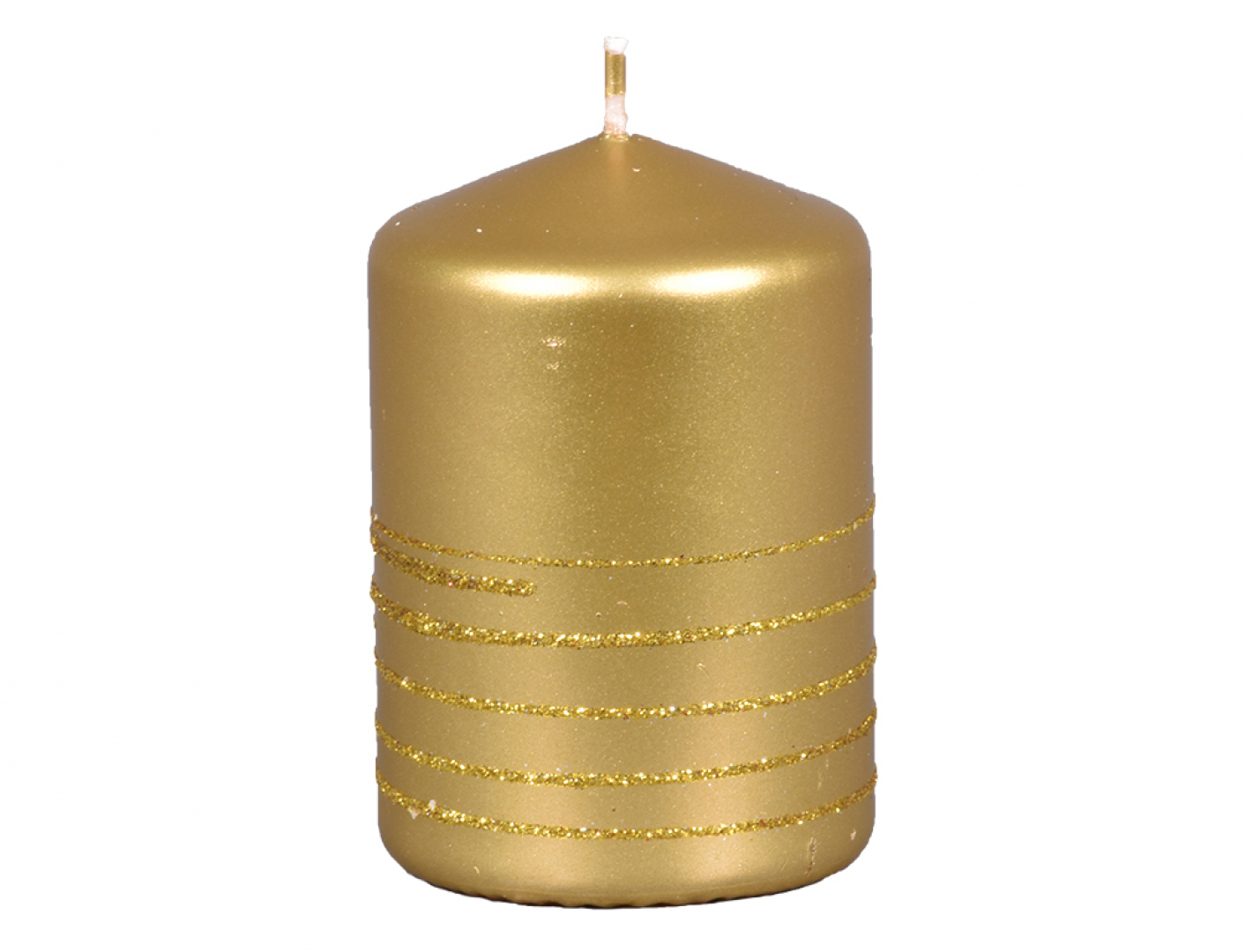 Svíčka ve tvaru válce. Má hladký, lesklý povrch zdobený jemnými třpytivými proužky. Jemně podtrhne vánoční vazby a výzdobu. Doba hoření: 30 hodin. Rozměry: průměr 6 cm, výška 9 cm. Barva: zlatá. číst celé