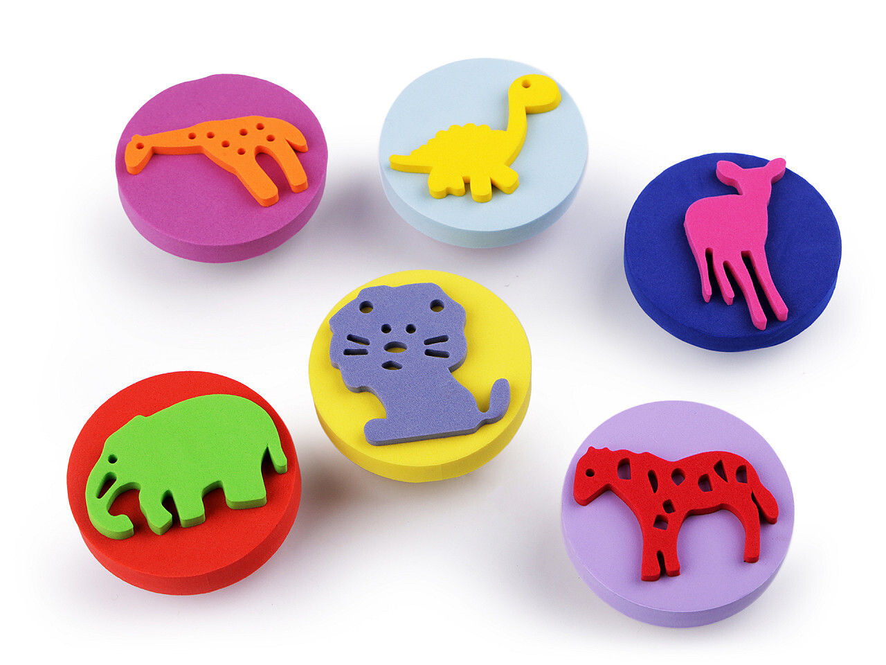 Pěnová razítka zvířátka Ø6 cm - 6 ks - mix