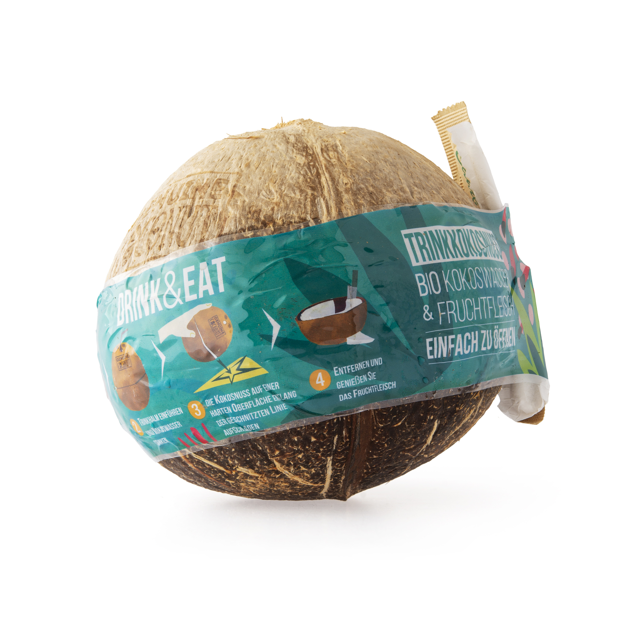 2. Vložte brčko a vypijte kokosovou vodu.