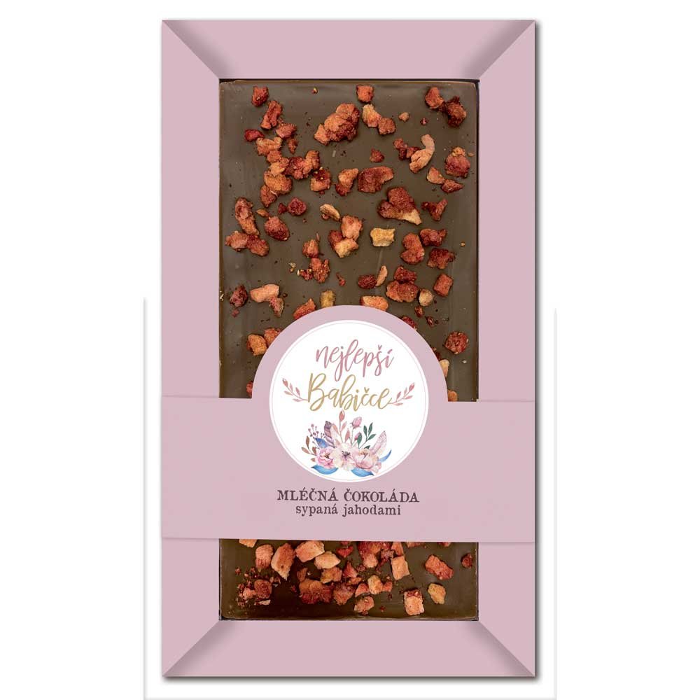 Dárková ručně vyráběná mléčná čokoláda 80 g s jahodami- nejlepší babičce