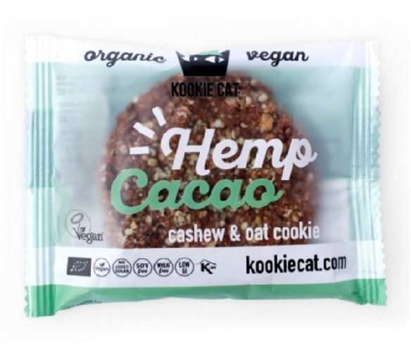 Křehké a skutečně vymazlené cookies z řady výrobků KOOKIE CAT. Obsahují jen hodnotné a přirozeně bezlepkové suroviny vyprodukované dle zásad ekologického zemědělství. Jsou bez přidaného nehodnotného cukru, na doslazení se používá pouze sušený kokosový nektar a obsahují superpotraviny. Alergeny: Skořápkové plody Složení: bezlepkové ovesné vločky*, kešu*, kokosový nektar*, kokosový olej*, 12% konopná semínka*, 3,5% kakaový prášek*, konopný protein*, bourbonská vanilka* *suroviny produkce ekologického zemědělství (BIO) Nutriční hodnoty (100 g): Energie: 2 098 kJ / 504 kcalTuky: 31 g z toho nas. mast. kys.: 15 g Sacharidy: 38 g z toho cukry: 17 g Bílkoviny: 14 g Vláknina: 8,8 gSůl: 0,06 g Výrobce: KOOKIE CAT