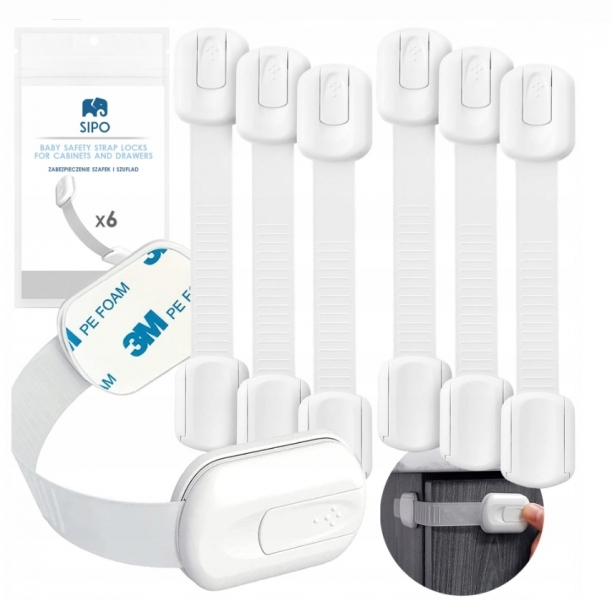 SIPO sada 6 kusů univerzálních bezpečnostních prvků pro skříně, zásuvky se snadnou funkcí zámku, která zajistí rychlý přístup dospělým ale ochrání před otevřením malými dětmi.