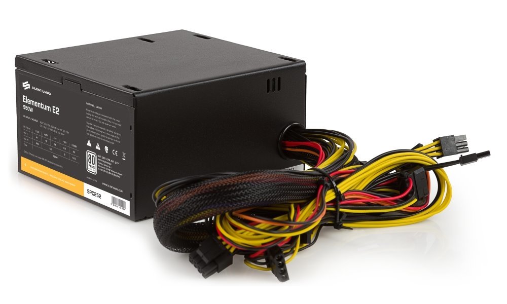 SilentiumPC zdroj 550W / Elementum E2 / 120mm fan / Akt. PFC / 80PLUS EU