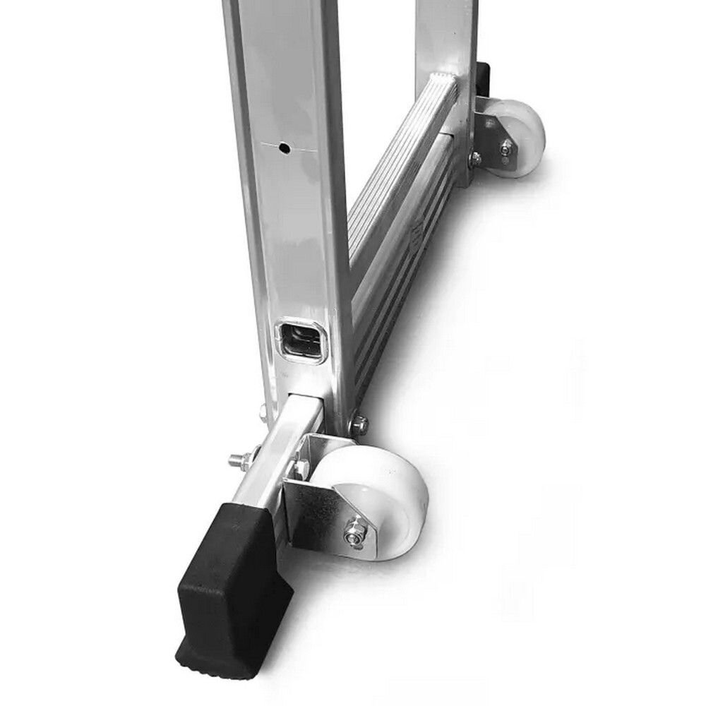 Sada 2 pojezdových koleček pro hliníkové žebříky a lešení výrazně ulehčuje manipulaci a převoz konstrukce. Polyamidová kolečka s průměrem 80 mm zajišťují hladký pohyb a spolehlivost. Pevné uchycení na stabilizátor žebříku zaručuje bezpečné použití. Součástí balení je montážní materiál pro snadné připevnění. Univerzální systém uchycení, vhodné pro jakýkoliv žebřík a lešení na trhu.