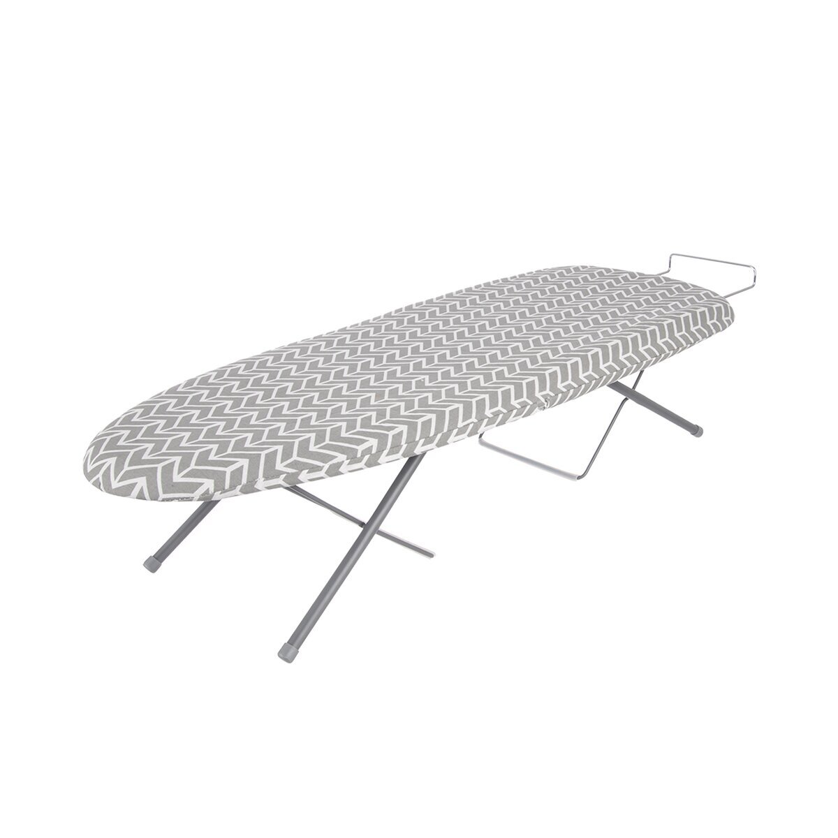 Skládací stolní žehlicí prkno oceníte, pokud máte doma nedostatek místa nebo pokud žehlíte pouze občas. Může se hodit studentům na kolej, skvělé je také na cesty, na chatu, na dovolenou v karavanu. Prkno rozložíte, zajistíte ho proti nechtěnému složení dvěma pojistkami, položíte na stůl a můžete žehlit. Stejně snadno ho pak složíte, zajistíte pomocí gumičky a uložíte do skříňky, do zásuvky, pověsíte na háček. Protiskluzové nožičky zajišťují stabilitu při žehlení a zároveň chrání povrch stolu. Bavlněný snímatelný potah s 5 mm plstěným polstrováním (max. teplota při žehlení 180 °C), lze ho prát na 30 °C. Teplota žehličky smí působit na plochu prkna krátkodobě, tažením po materiálu, nelze žehličku na prkno odkládat na delší dobu. V takovém případě by mohlo dojít k poškození prkna díky vysoké teplotě (změna barvy, propálení, nebo jiné mechanické poškození) a nejedná se v takovém případě o vadu výrobku. Max. zatížení prkna 5 kg, držáku na žehličku 5 kg. Je opatřeno pojistkou proti samovolnému složení a výsuvným držákem na žehličku. Díky otvorům v konstrukci žehlicí plochy je vhodné pro napařování. Materiál: kov (železo) s povrchovou úpravou, 100% bavlna (potah), plsť (výplň), plast PP, silikon. Rozměry: žehlicí plocha 77x31 cm, v. 18 cm, ve složeném stavu 43x31x9 cm. Návod je součástí balení.