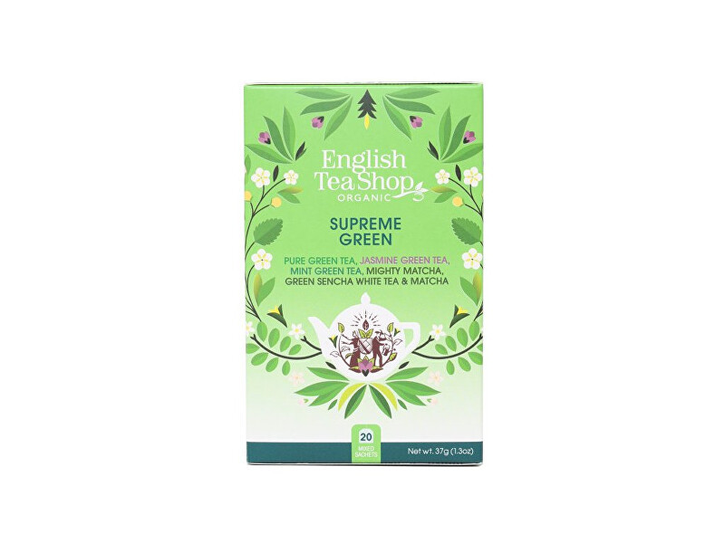 Organic Green Tea with Jasmine and Elderflower. Ingredients: Organic green tea (93%), organic jasmine flowers (3.25%), organic elderflower (2%), natural flavouring (1.75%).