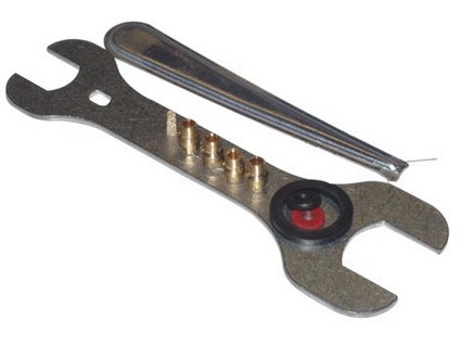 sada obsahuje: montážní klíč, propichovací jehlu, těsnění, sintr a trysky