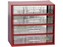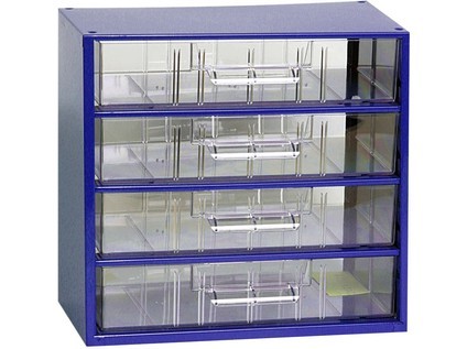 Kovová ukládací skříňka s plastovými zásuvkami 1 velikostí je vhodná pro přehledné skladování drobných předmětů a součástek."