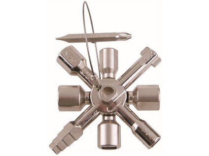 Univerzální klíč pro otevírání elektrických rozvaděčů, plynových a vodních kohoutů, pro klimatizaci, ventilaci a odvzdušňování topení.