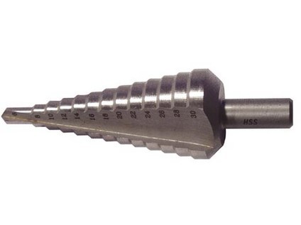 Stupňovitý vrták HSS 2 6-30 mm je ideální ke zpracování plechu, často se používá také jako anténový vrták.