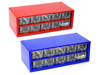 Kovová ukládací skříňka s plastovými zásuvkami 1 velikosti je vhodná pro přehledné skladování drobných předmětů a součástek.