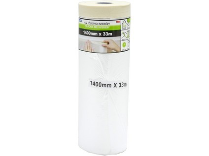 Páska krycí interiérová 140 cm x 33 m, samolepicí, se zakrývací folií. rozměry: 140 cm x 33 m - CQ fólie pro interiéry - nosič hladký krep, lepidlo kaučuk - materiál HDPE, síla 0,010 mm - odstranitelná beze stop do 2 dnů - pro zakrytí rozsáhlých ploch - na hladké povrchy