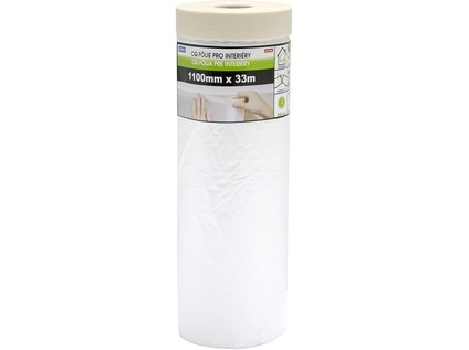 Páska krycí interiérová 110 cm x 33 m, samolepicí, se zakrývací folií. rozměry: 110 cm x 33 m - CQ fólie pro interiéry - nosič hladký krep, lepidlo kaučuk - materiál HDPE, síla 0,010 mm - odstranitelná beze stop do 2 dnů - pro zakrytí rozsáhlých ploch - na hladké povrchy