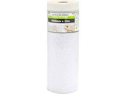 Páska krycí interiérová 180 cm x 33 m, samolepicí, se zakrývací folií. rozměry: 180 cm x 33 m - CQ fólie pro interiéry - nosič hladký krep, lepidlo kaučuk - materiál HDPE, síla 0,010 mm - odstranitelná beze stop do 2 dnů - pro zakrytí rozsáhlých ploch - na hladké povrchy