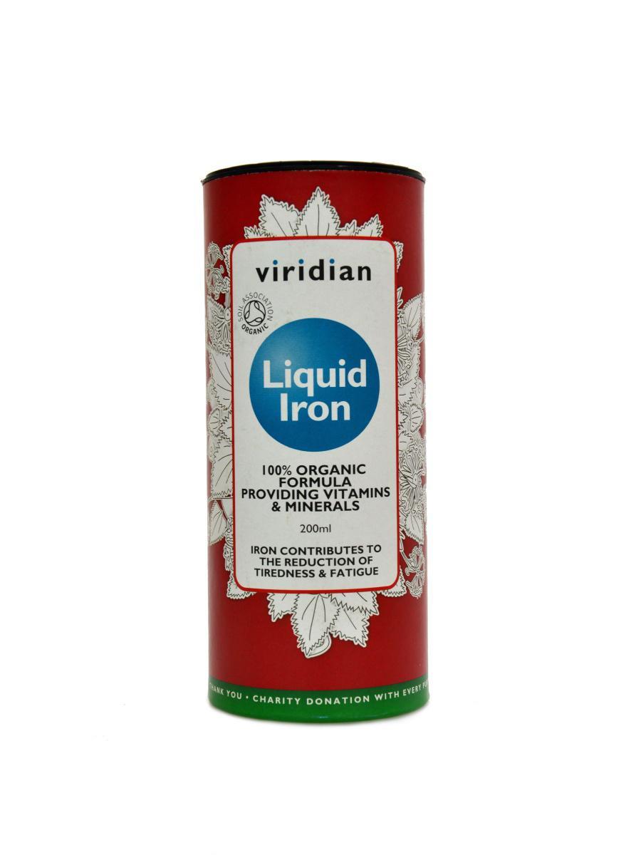 100% Organic Liquid Iron obsahuje unikátní, plně certifikovaný organický zdroj železa extrahovaný z listů Murraya koenigii, bio glycerol, bio šťávu z aceroly, bio nálev z listů kopřivy a pampelišky, bio bulharský květový med, bio citrónovou kůru, listy guavy (Psidium guajava) a ovocné výtažky z amly (indický angrešt) poskytující vitamin B a C, bio pomerančový olej a bio chaluhu (Ascophyllum nodosum) poskytující jód.