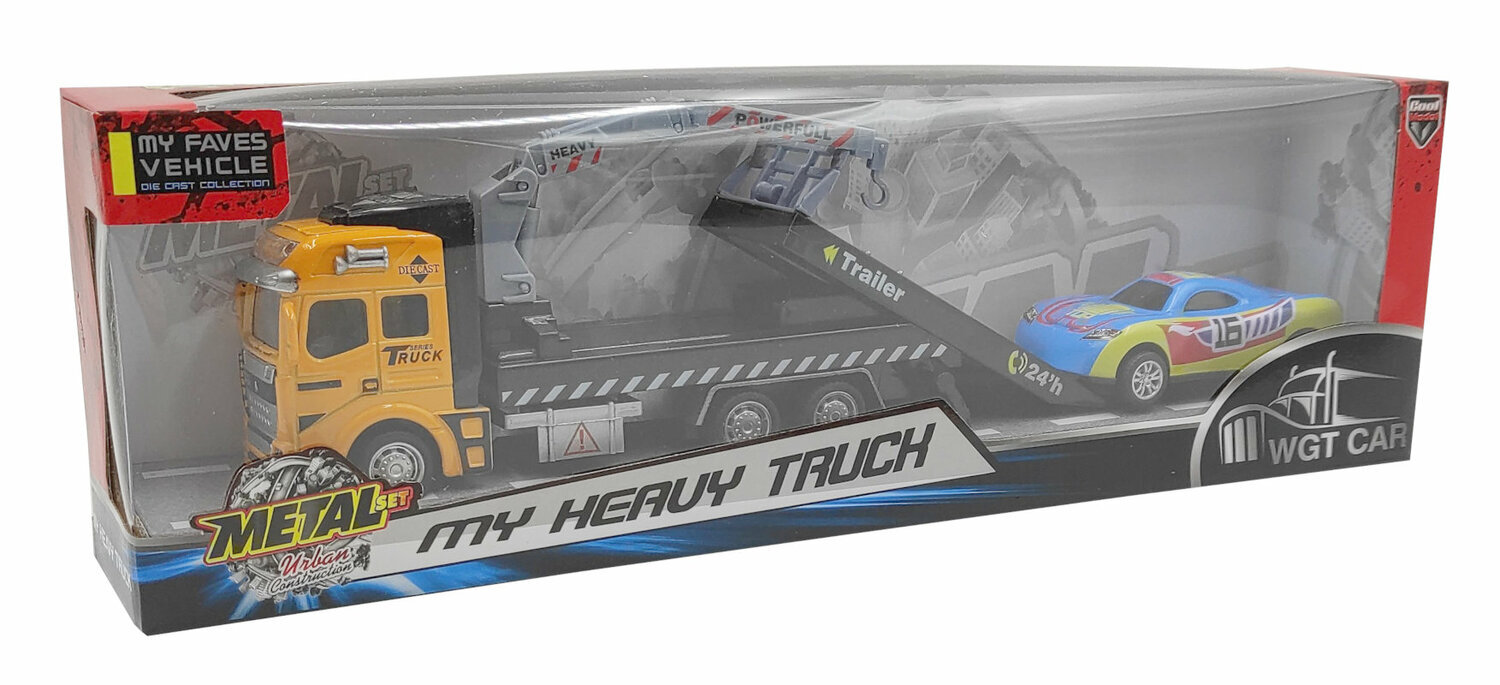 Samochód laweta z pojazdem do transportu. Pojazd z napędem, z efektami świetlnymi i dźwiękowymi. Załaduj samochód na lawetę i zawieź go na miejsce. Zestaw z metalowymi elementami. Występuje w kilku wariantach (sprzedawane oddzielnie). Wymiary opakowania: 38x7x12 cmBaterie: 3 x AG13 (w zestawie)....