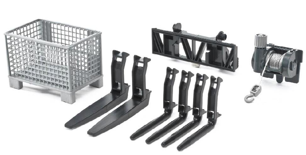Produkt zahrnuje vše potřebné pro efektivní nakládání a přemisťování břemen - od kvalitní lanové vrátek přes specializované vidlicové příslušenství až po spojovací prvky a ochranný koš. Díky tomuto vybavení si práci výrazně usnadníte, zvýšíte bezpečnost při manipulaci a zlepšíte organizaci práce.