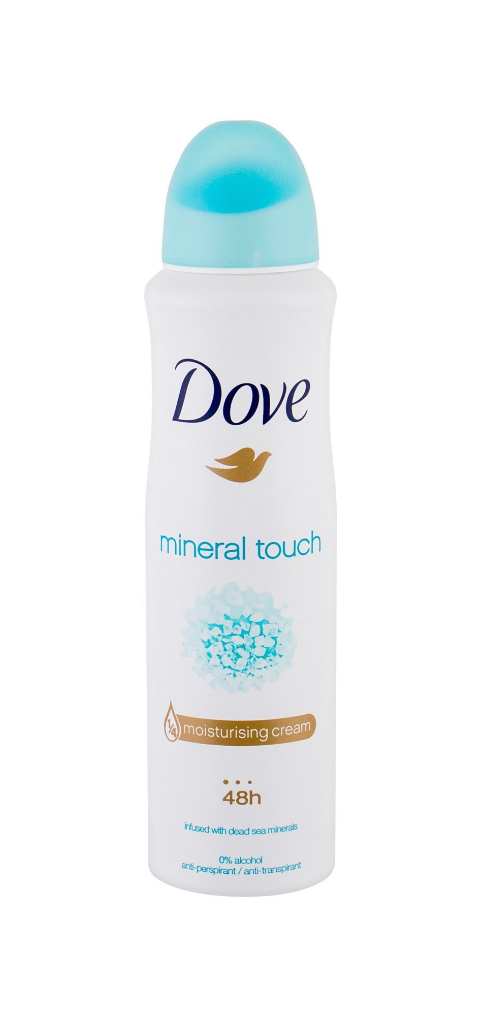 Antiperspirant **Dove Mineral Touch** ve formě spreje s 1/4 hydratačního krému poskytuje účinnou ochranu proti nežádoucímu pocení a zápachu. Jemné složení obohacené o minerály z Mrtvého moře je připravené udržat vaše podpaží v suchu, perfektně hydratované a svěží po dobu 48 hodín. ### Čím si vás antiperspirant Dove Mineral Touch získá? * jemné složení obsahuje až 1/4 hydratačního krému a minerály z Mrtvého moře, * brání nadměrné tvorbě potu, neutralizuje tělesný zápach, * udržuje pokožku svěží a hydratovanou po dobu 48 hodín, * je parfemovaný čistou svěží vůní. ### Jak správně používat antiperspirant? Před použitím protřepejte. Antiperspirant aplikujte přímo na pokožku ze vzdialenosti 15 cm. Zabraňte jeho kontaktu s očima.